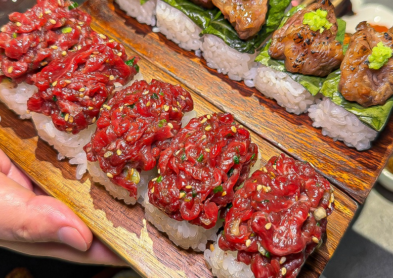 [사진: 육회 / 육회김밥]